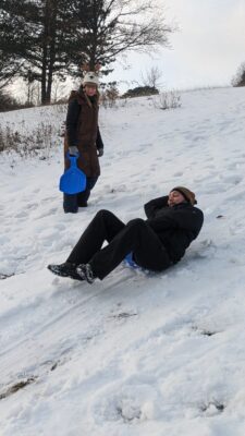 Und da wir nebenan einen kleinen Hügel hatten, war Rodeln am Tagesprogramm. Wir sind den Berg runtergeflitzt und hatten irrsinnig viel Spaß. Wir haben wieder Kekse ausgestochen, gebacken und verziert und diese dann schön verpackt an Obdachlose gespendet. Und am Abend gab es unsere traditionelle Weihnachtsfeier 🎄🎅